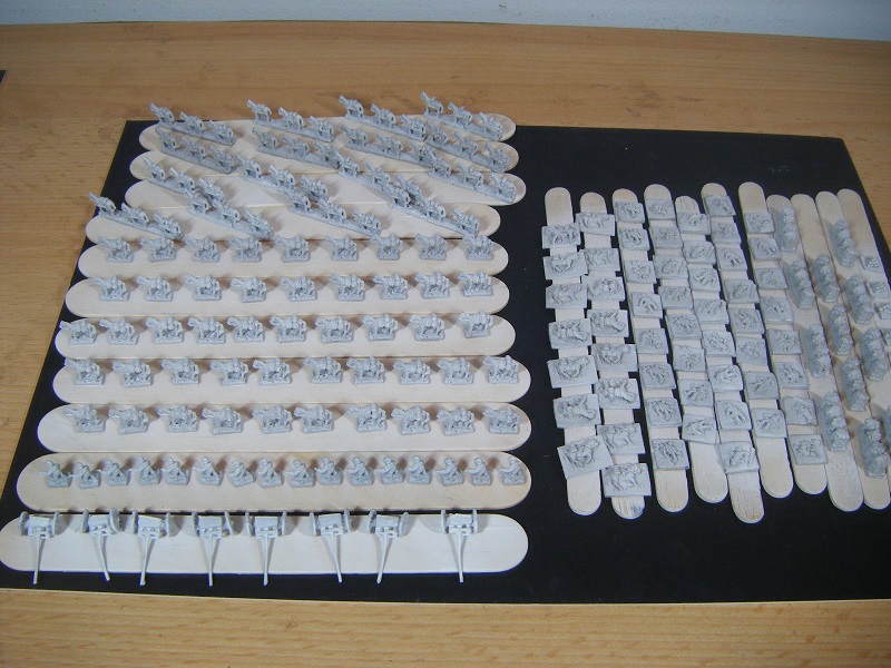 After finishing off the Mongols this morning, I broke out the new airbrush to do some priming. I actually got quite a bit done, as these pics show: