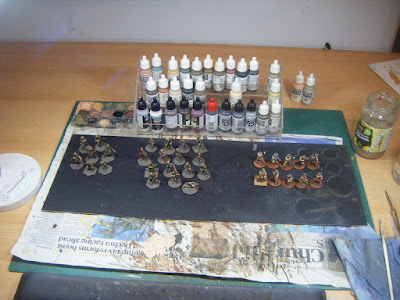 I'm going to do the base colours and initial washes on the whole batch, but will break them down into smaller groups for the highlighting. I should be able to get them mostly finished this weekend.