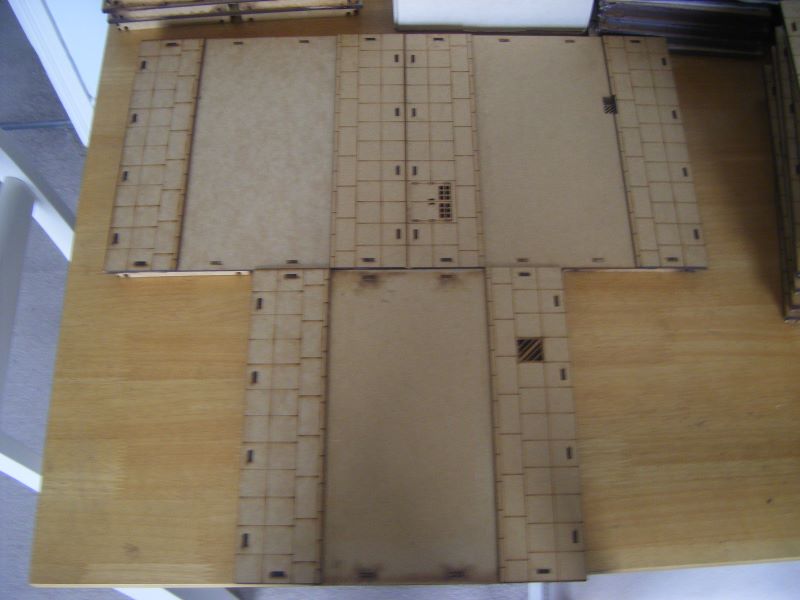 In between doing other things on Thursday and Friday I assembled the VersaTiles and connectors. Each tiles is 30cm x 30cm and has a recessed frame underneath - the recess allows it to slot into "foundation" frames which create elevations (they also make half-height "terraces" for partial elevations).